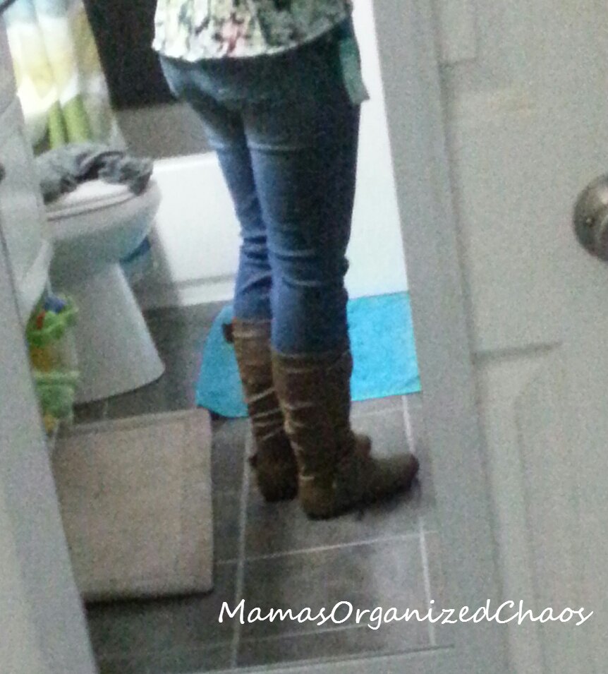 I asked for jeans that had a higher rise, because I am sick of my underwear or butt peaking out of the top of my jeans when I sit down. I am always pulling up my jeans and hate it! I am convinced that men are the only ones designing jeans for women out there! LOL! Anyway, these jeans fit like a glove. They have a higher waist which I am now in love with, and they are incredibly soft. I wouldn’t have chosen the cuff at the bottom, but I really don’t mind it now that I’ve tried them on! (I’m wearing them in all pictures below).