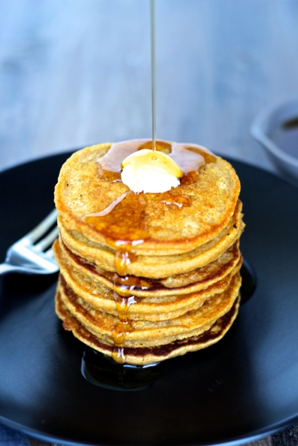 Your little one will flip over these pancakes! They’re packed with whole grains and nutritious sweet potatoes, and flavored with cinnamon, nutmeg, vanilla and a hint of maple syrup—perfect for Sunday brunch. If you can’t find white whole wheat flour, use a mixture of whole wheat and all purpose flours.