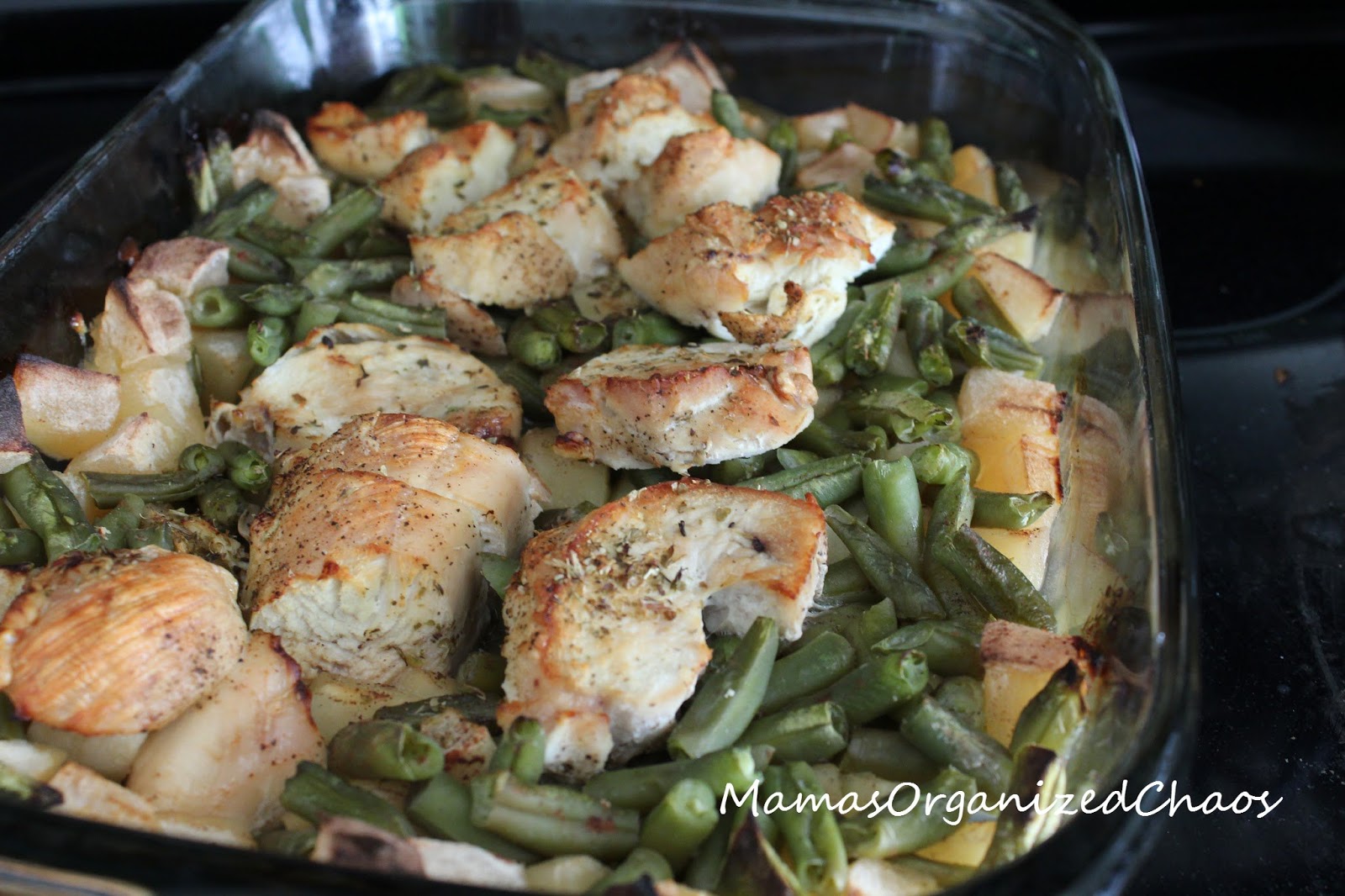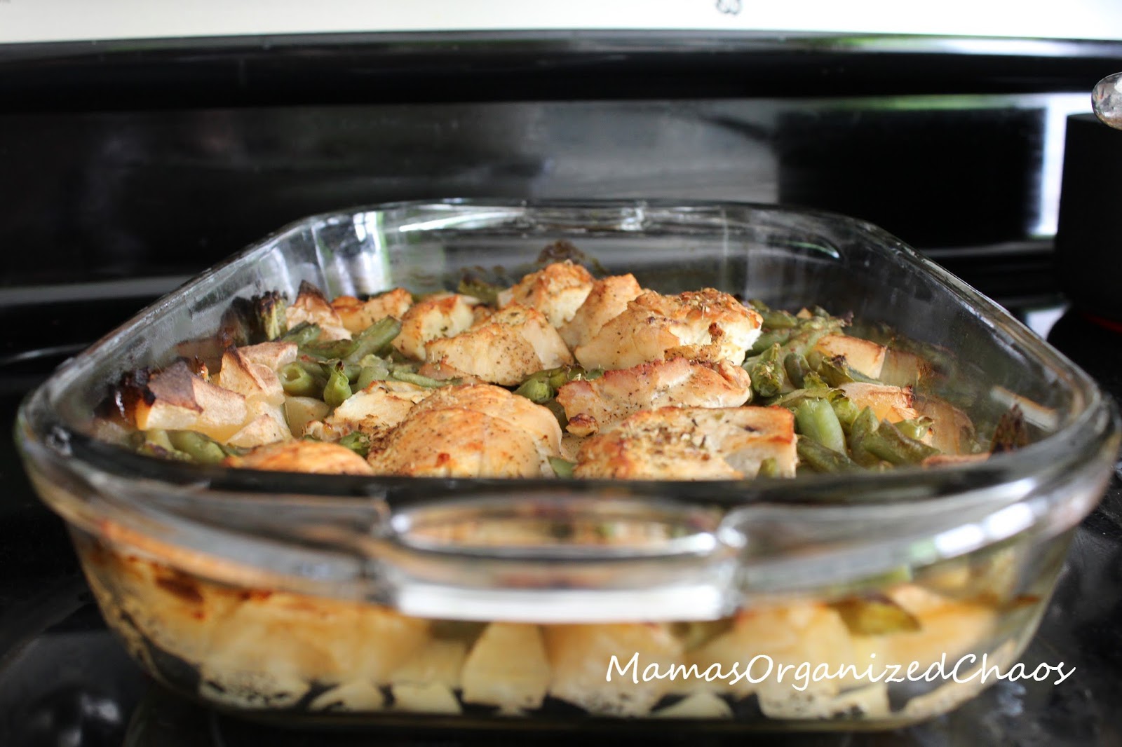 So this recipe I found online and decided to tweak just a bit to make it easier. It came out great! The only thing I’ll warn: If you have your meal cooked perfectly, do not decide to turn the oven off and leave it in the oven to “keep it warm”. I ruined my chicken this way! 🙁 Other than that, had I taken it out when it was still nice and juicy, the flavor was amazing and it would have been a spectacular meal! We will definitely have this again, and may substitute the chicken for pork chops.