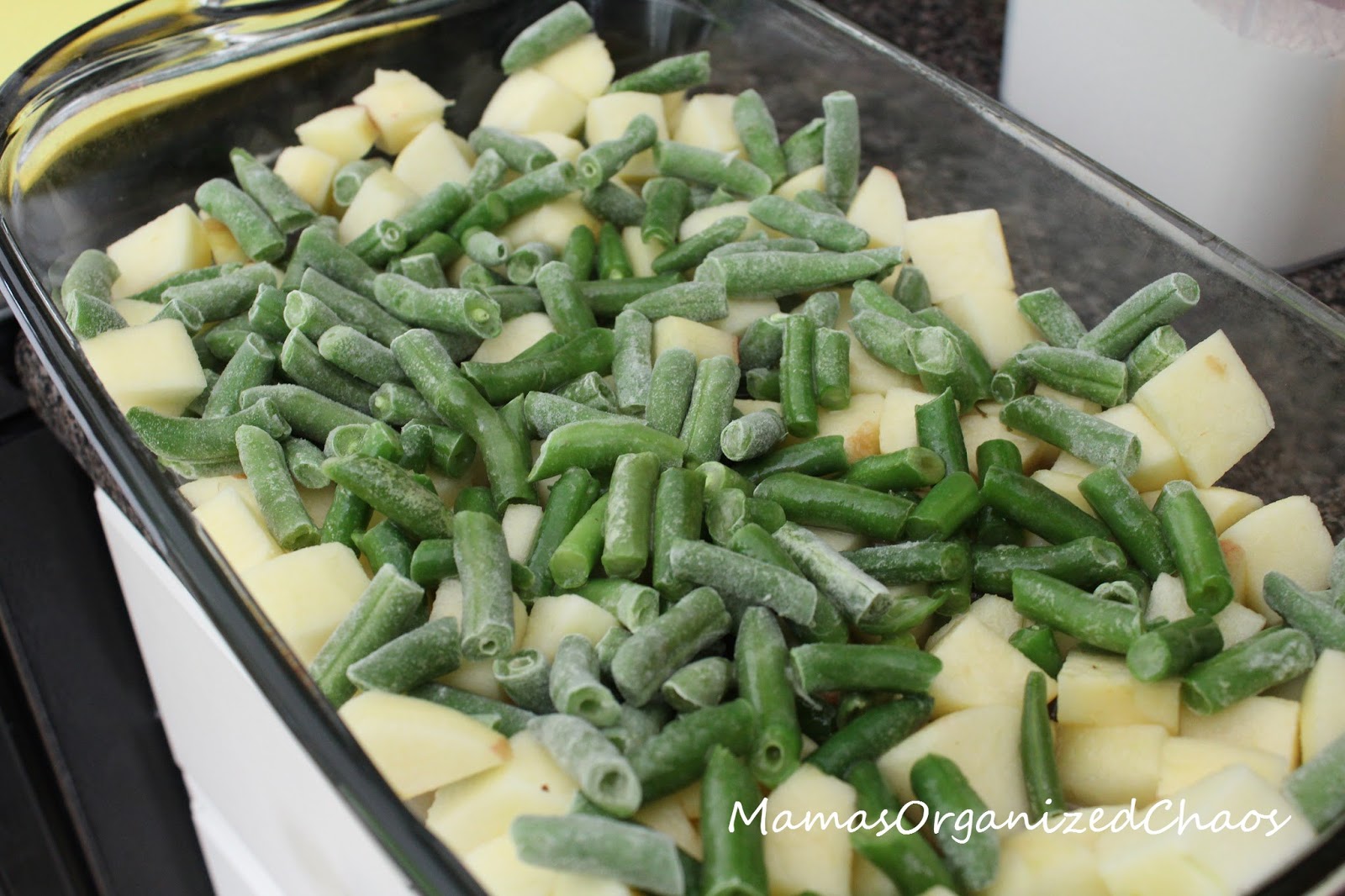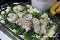 This is another baby friendly meal that allows baby to feed herself! The apples get nice and soft and are going to be the favorite! The green beans are easy to handle, and the chicken can be cut to desired size.